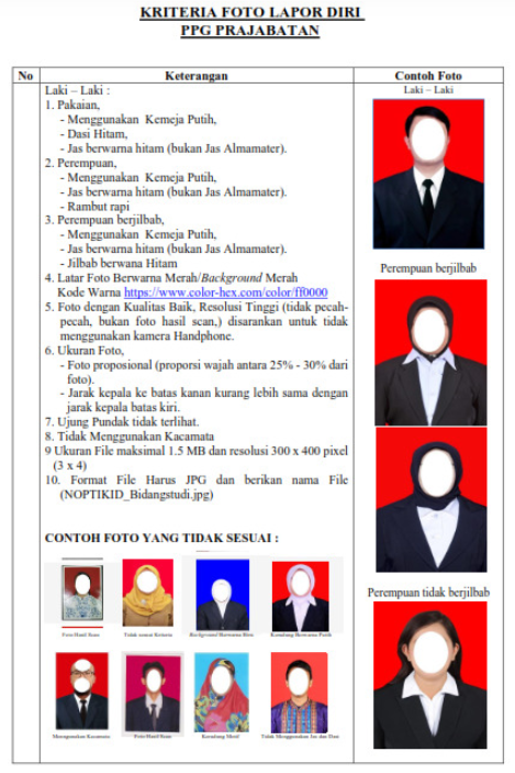 • Bagi Laki-Laki: Berjas formal gelap (Hitam), berdasi, kemeja putih dan tidak berpeci. (Nama File foto (Foto_NOSIMPKB_BidangStudiPPG)