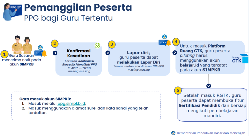 Sehubungan dengan Hal tersebut, Bagi calon mahasiswa PPG GURU TERTENTU UNJ TAHAP 3 wajib melakukan KONFIRMASI KESEDIAAN dan Update Profil di SIM-PKB (Panduan Kesediaan SIMPKB). Kesediaan dan Update Profil pada SIMPKB WAJIB dilakukan sebagai syarat untuk mengikuti PPG Guru Tertentu dan akan ditetapkan oleh GTK Kemendikdasmen. Tanpa melakukan kesediaan bapak ibu tidak dapat mengikuti kegiatan ini. Jika sudah melakukan kesediaan maka bapak ibu dapat segera bergabung masuk ke Group Telegram atau WhatsUp PPG Guru Tertentu UNJ.